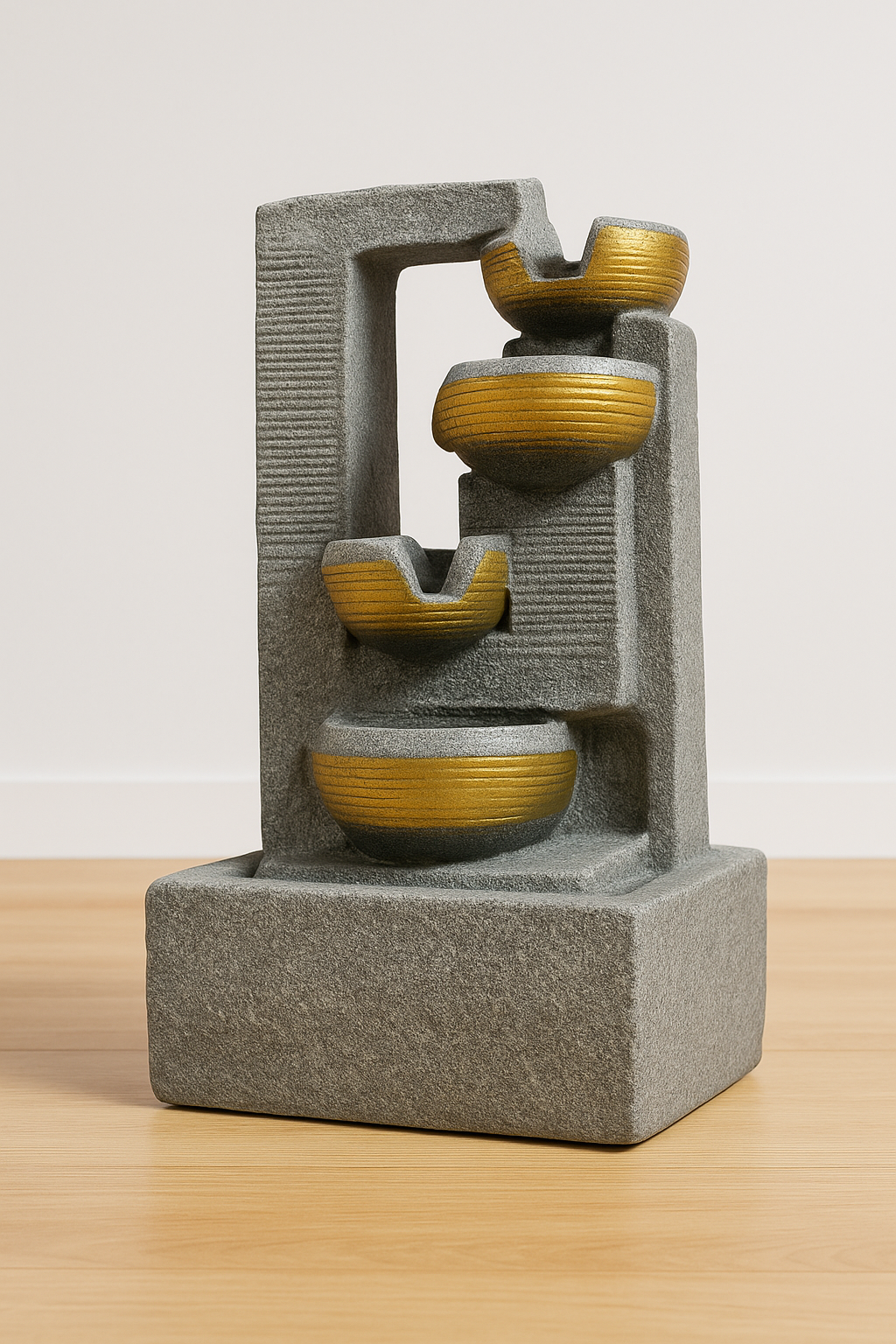 Tranquil Sound: Operates with a quiet submersible pump (included), producing the soothing, rhythmic sound of water gently spilling from tier to tier.