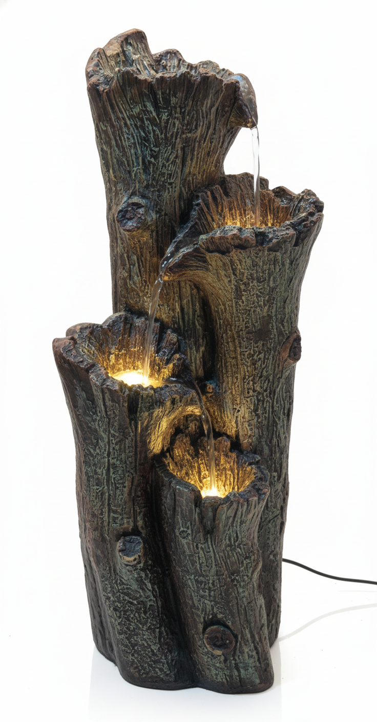 • Feature: Includes pump and integrated warm LED lighting along the edges to illuminate the water flow.