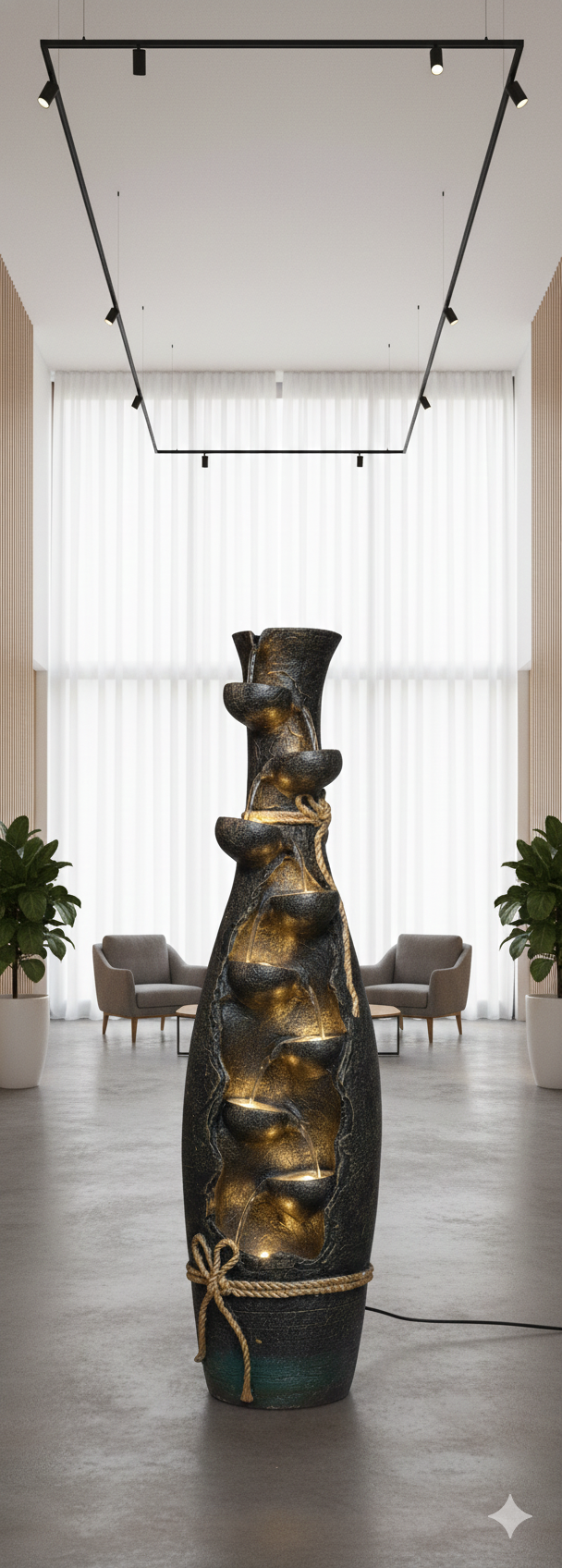 • Aesthetic: Creates a rugged, dynamic, and prominent indoor/outdoor water feature.