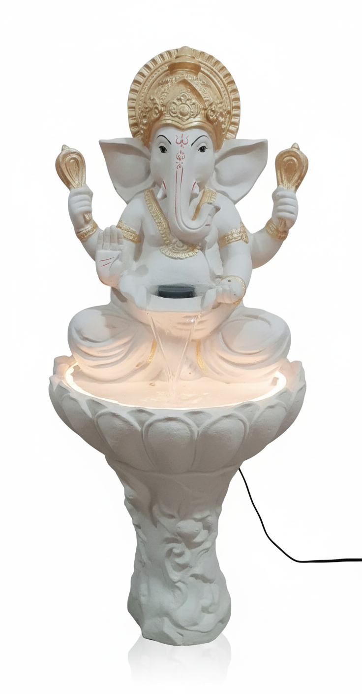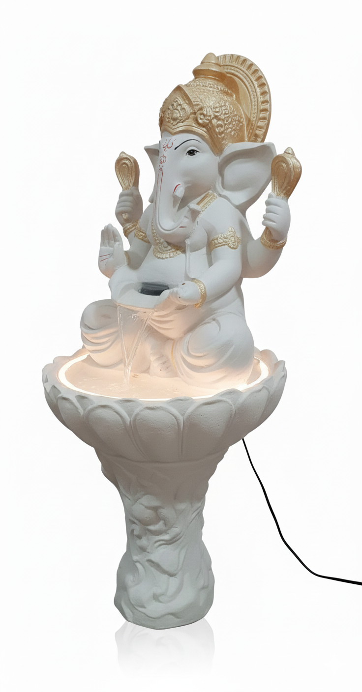ganesha fountainArt O Hub | 48 Inch Illuminated Terracotta Goddess Statue Waterfall Fountain | Grand Classical Accent