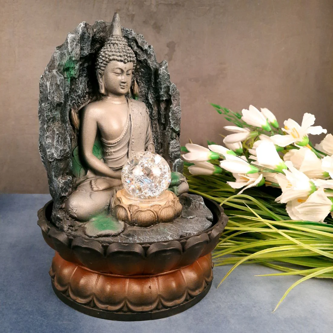 Lord Buddha has been known to teach Dharma to his disciples which changed the course of humankind and the way they perceived the world. Bringing that wisdom mixed with art, this water fountain opens up avenues for you to embrace tranquillity and ease. The design ensures Vastu effective styles and also leans towards home décor that you can use in Feng Shui. Perfect for your living room, garden, or balcony, this Lord Buddha water fountain brings peaceful emotions to its environment with its mellow water-flowing sound. The in-built light in the fountain adds to the charm of the showpiece and enhances the experience of the flowing water sound as you go about your activities. Work around it or just take a break to w