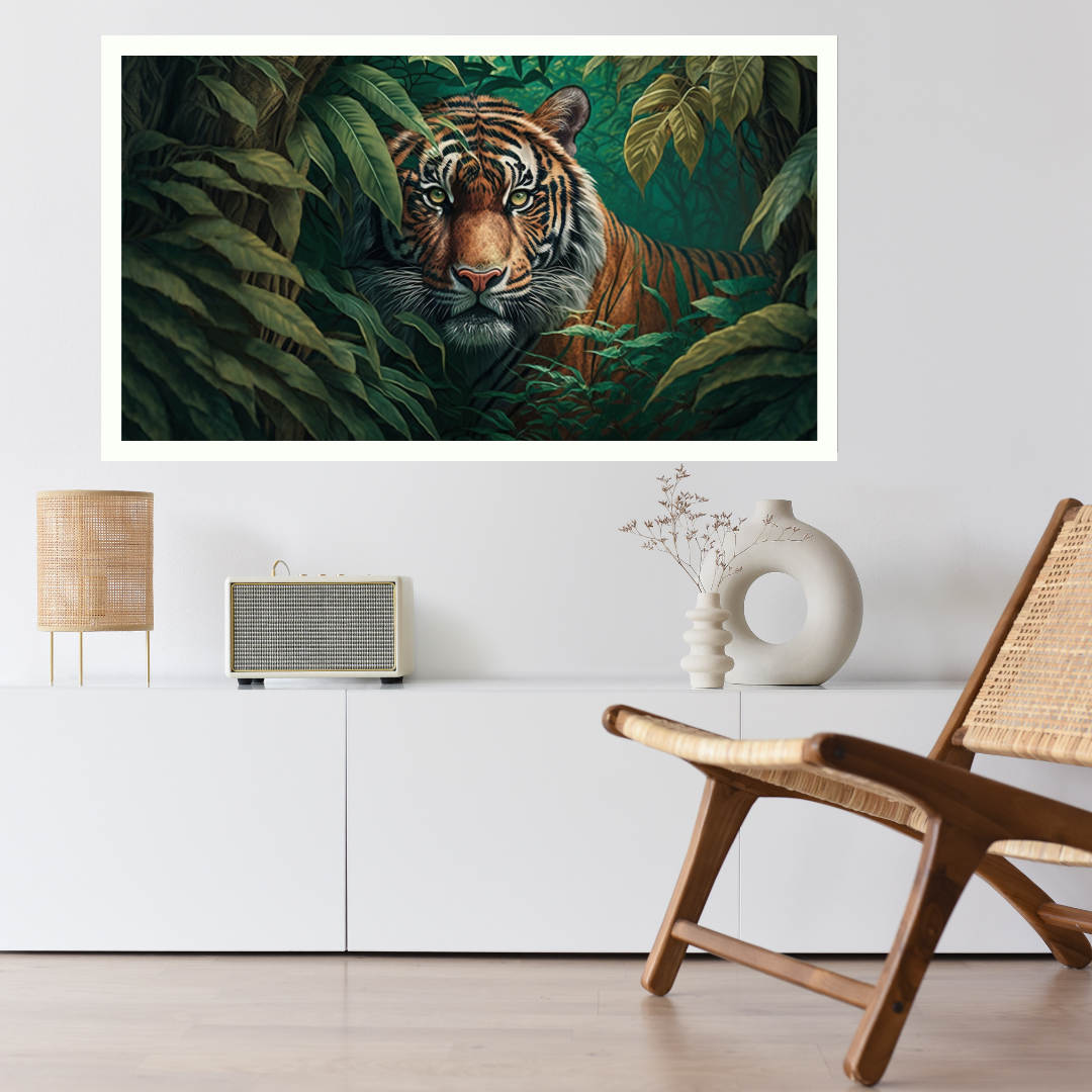 • White Frame: Provides a clean and contemporary aesthetic, allowing the powerful imagery of the tiger and the lush jungle to take center stage and brightening any space with its fresh and versatile appeal, suitable for various home styles in Amritsar.