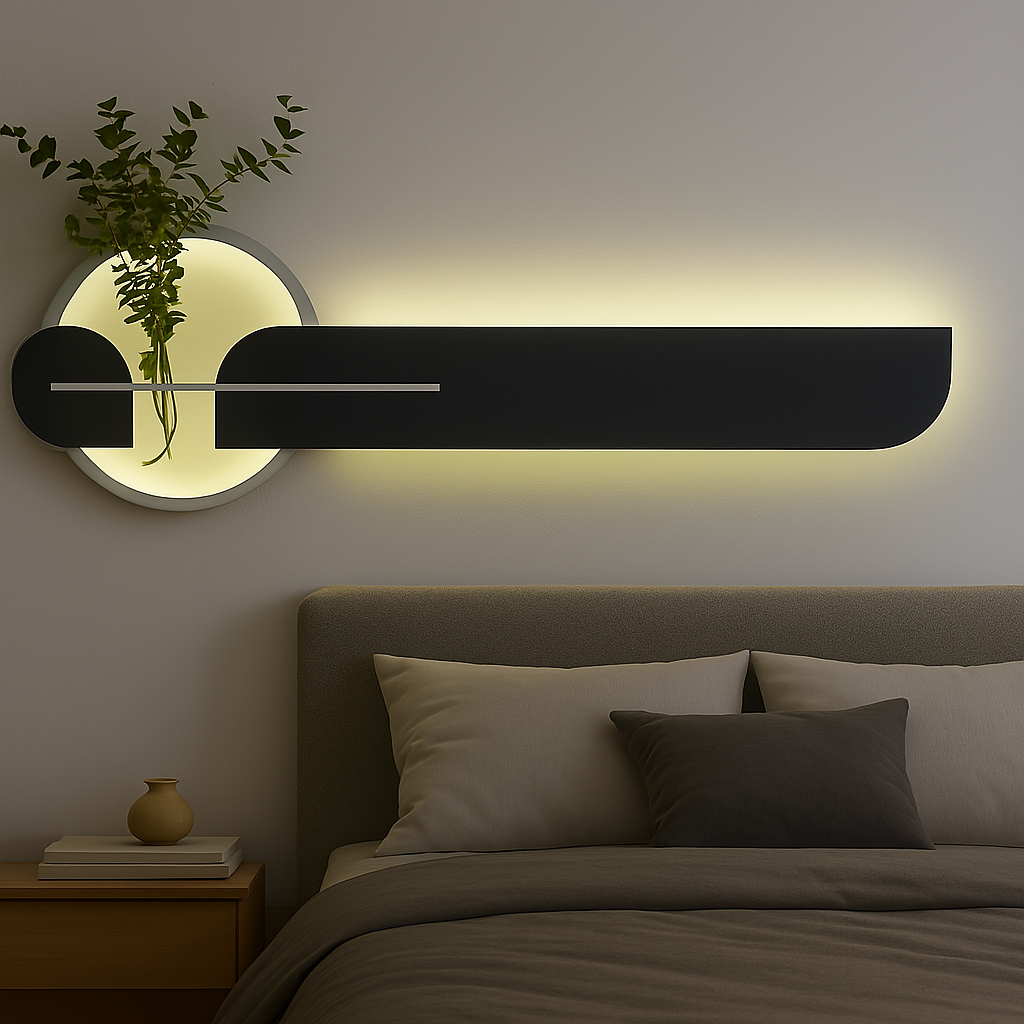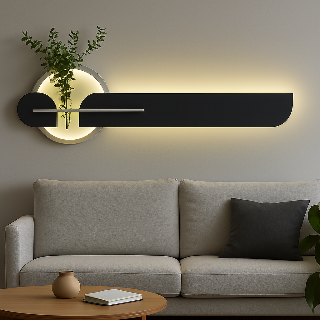 Elevate your contemporary interiors with “The Eclipse Bar,” an striking handcrafted wall sconce from Art O Hub. This sleek and sophisticated piece beautifully combines bold geometric forms with ambient illumination, designed to create a captivating focal point above a bed, sofa, or in a long hallway.