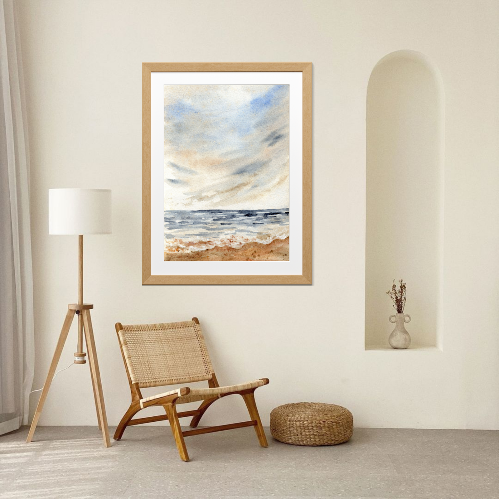 Each “Whispers of the Coast” canvas print is meticulously produced using high-definition, fade-resistant inks on premium artist-grade canvas, ensuring the delicate watercolor washes and subtle atmospheric details are beautifully captured. Our prints are expertly stretched over durable wooden frames and arrive ready to hang, providing an instant and effortless elevation to your wall decor.