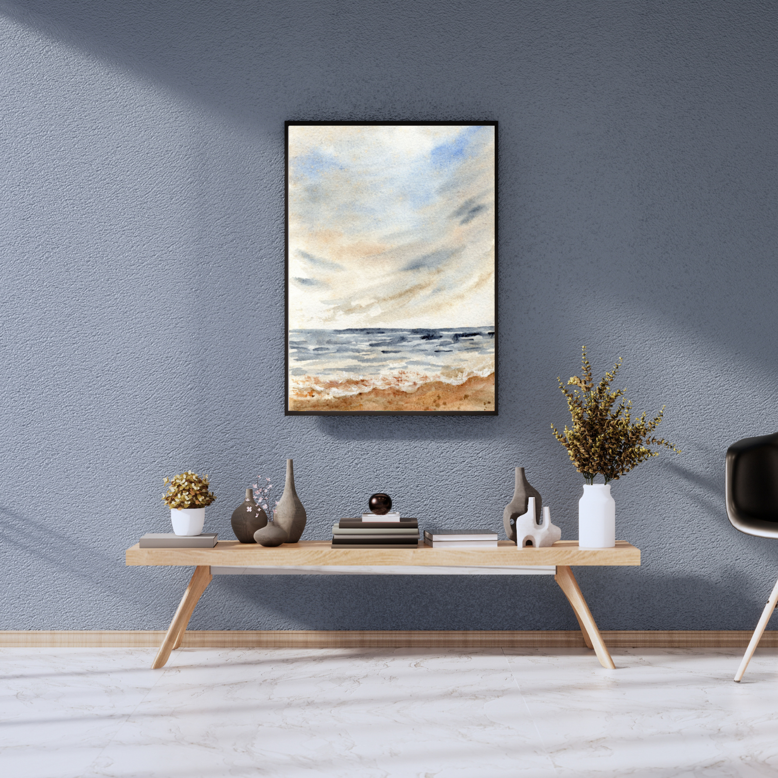“Whispers of the Coast” is more than just a painting; it’s an invitation to pause and breathe. Its gentle brushstrokes and harmonious color palette create an atmosphere of peace and introspection, making it a perfect piece for cultivating a serene environment. This artwork is ideally suited for modern, farmhouse, coastal, or even traditional interiors, effortlessly adding a touch of natural elegance and calm to any room. Imagine it as a soothing presence in a bedroom, a welcoming view in a living area, or a thoughtful addition to a quiet study or bathroom. It’s designed for those who find solace in nature’s quiet moments and wish to infuse their living spaces with that same profound peace.